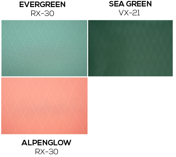 The RX-line is USA-made, 100% climate neutral and contains 100% post-consumer recycled polyester fabric with a FC-free (no fluorocarbon water repellent coating). VX-21 Sea Green is made from abandoned fishing nets while the rest of the RX line is made from plastic bottles.